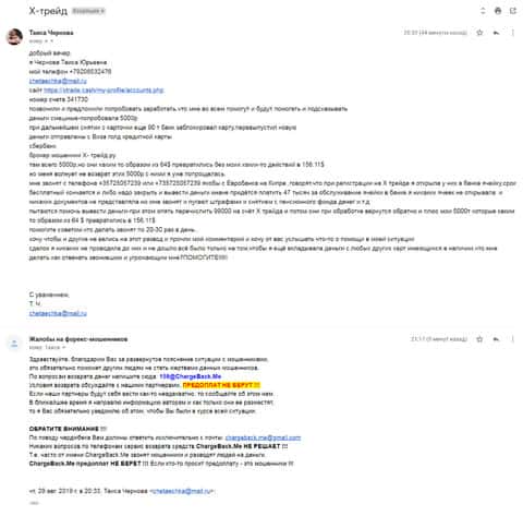В том случае если бесстыжие кидалы ХТрейд Вас обманули или стремились это сделать, то в такой ситуации оставьте Ваш е-майл чуть далее, и мы во что бы то ни стало с Вами свяжемся по электронной почте.