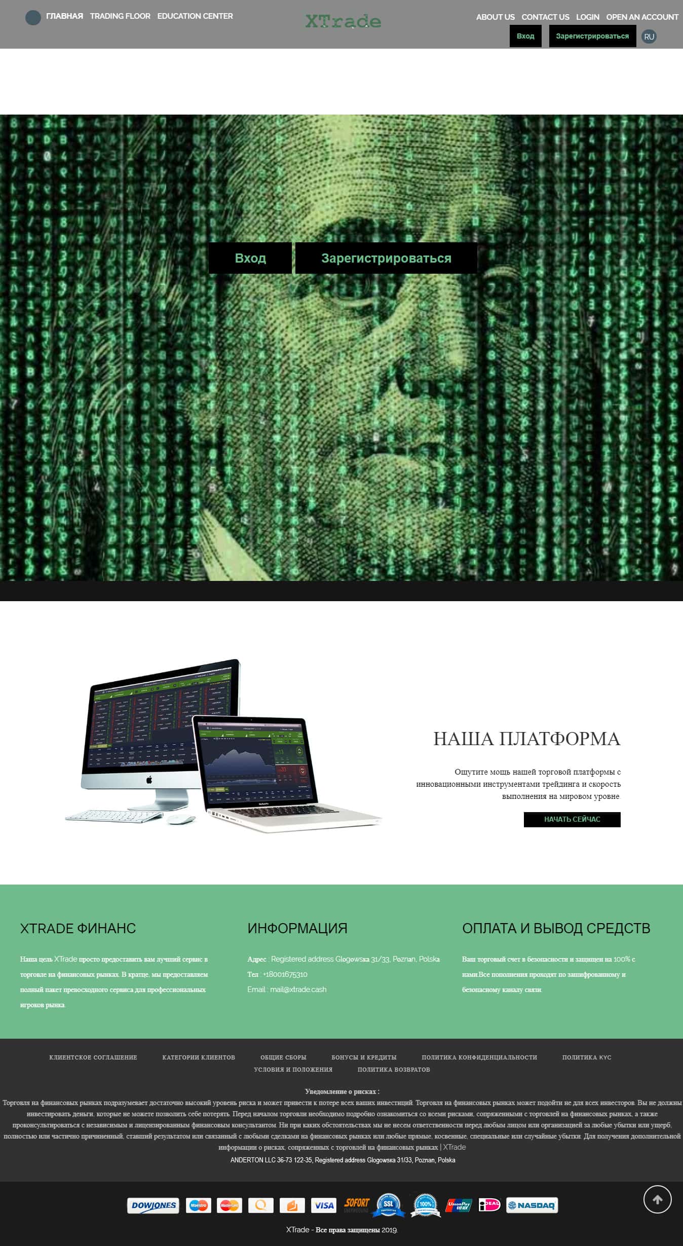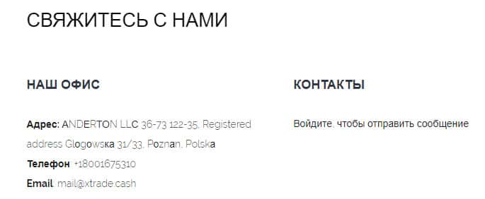 - электронная почта mail@xtrade cash