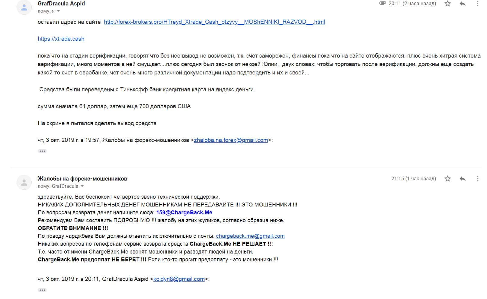 Еще одна жалоба от человека, который попался сразу на два лохотрона, при чем названия довольно схоже друг с другом. Это лохотроны XTrade и Xtrade Cash. Мошенники обоих контор смогли вытащить порядка 2 000 долларов, которые он переводил через банковскую карту. Как он только не пытался вернуть деньги – все без результата.