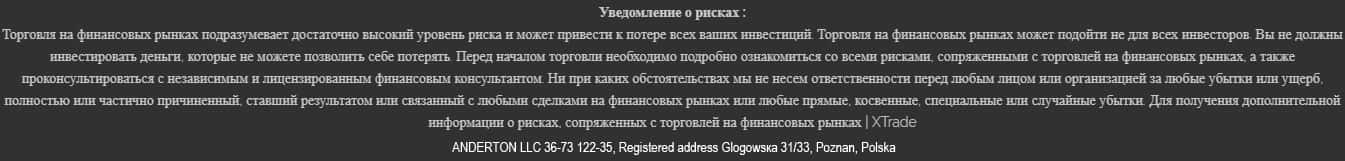 Касательно лицензии у такой шараги как ХТрейд даже нет смысла спрашивать. Эта интернет-пустышка решила таки запудрить мозги своим клиентам и вместо регулирующих документов подсунуть предупреждение, что работать с ними крайне рисковано и можно потерять все деньги.