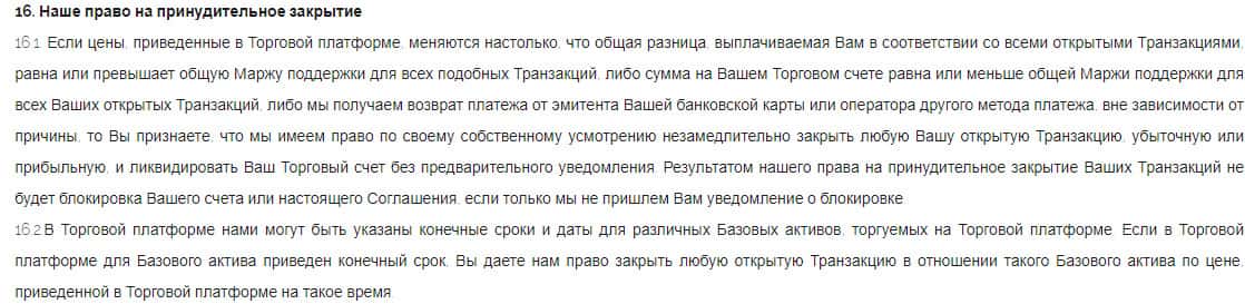 В клиентском соглашении дилинговая кухня Xtrade Cash также распускает себе руки, что можно заметить, прочитав один из пунктов. Там сказано, что мошенники имеют право на принудительное закрытие всех сделок клиента, и там уже для них не важно сколько клиент потеряет при совершения этой процедуры.