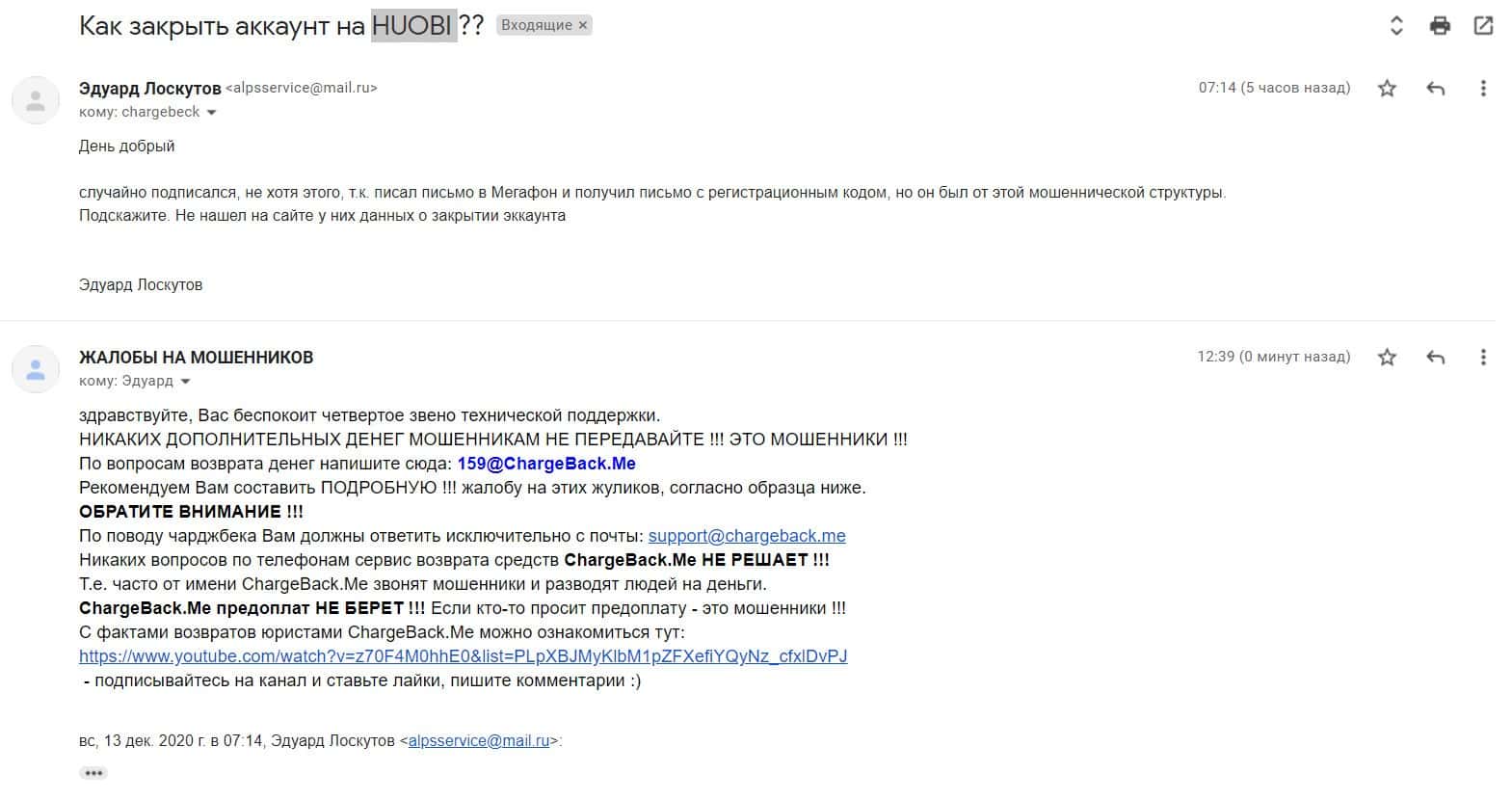 Если циничные махинаторы Хуоби Вас ограбили или же хотели это сделать, то в такой ситуации сообщите Ваш е-майл чуть ниже, и мы без сомнения с Вами установим контакт по электронной почте.