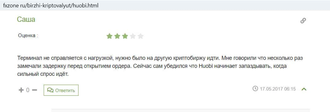 Сайт fxzone ru опубликовал отзыв трейдера, пожаловавшегося на плохую работу терминала на площадке Huobi. Саша жалеет, что связался с этой мошеннической компанией и говорит, что лучше бы он выбрал другую биржу. Его знакомые уже предупреждали о том, что здесь зачастую происходят задержки с закрытием ордеров.