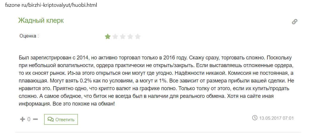 - Клиент площадки Хуоби назвал биржу ненадежной и пожаловался на нестабильную работу терминала и плавающую комиссию