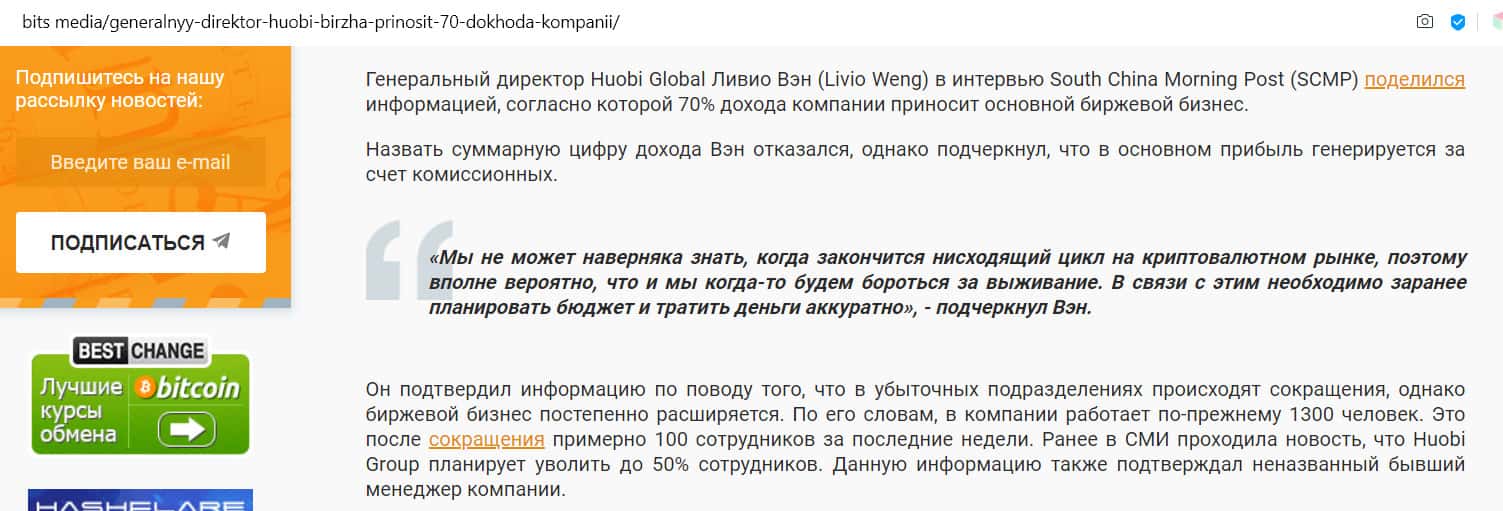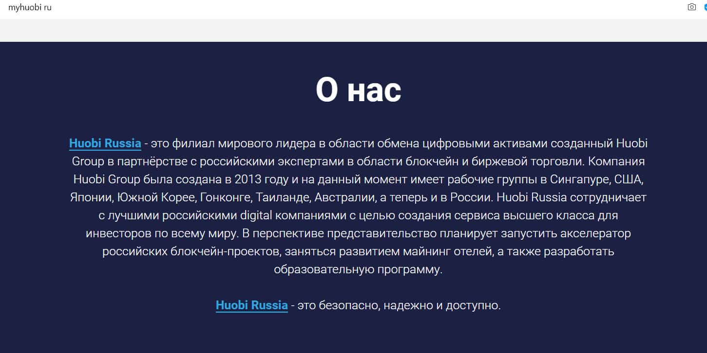 - Вранье на первой же странице сайта криптовалютной биржи Хуоби Россия