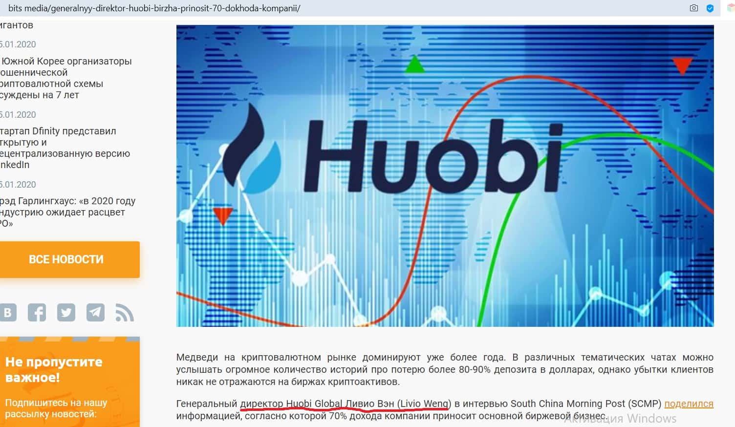 - Из материала на сайте yandex ua: брокерскую компанию Huobi обвинили в фальсификации объемов торгов