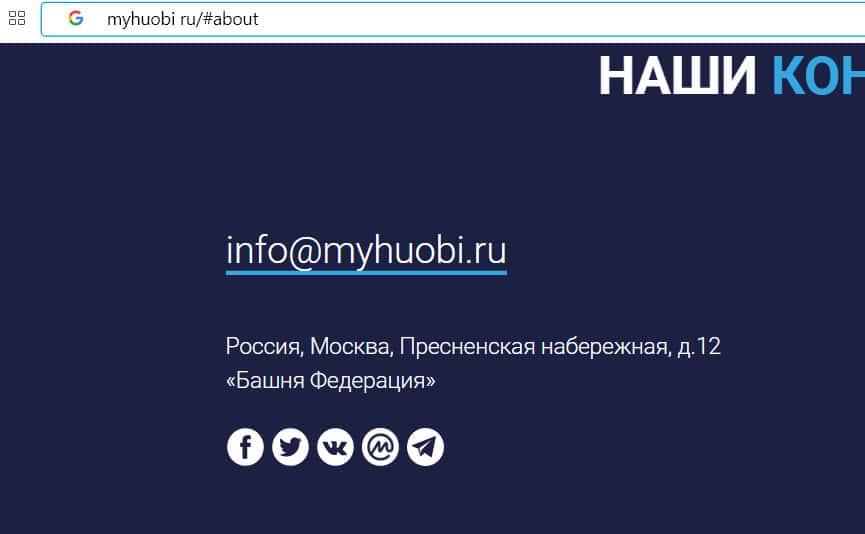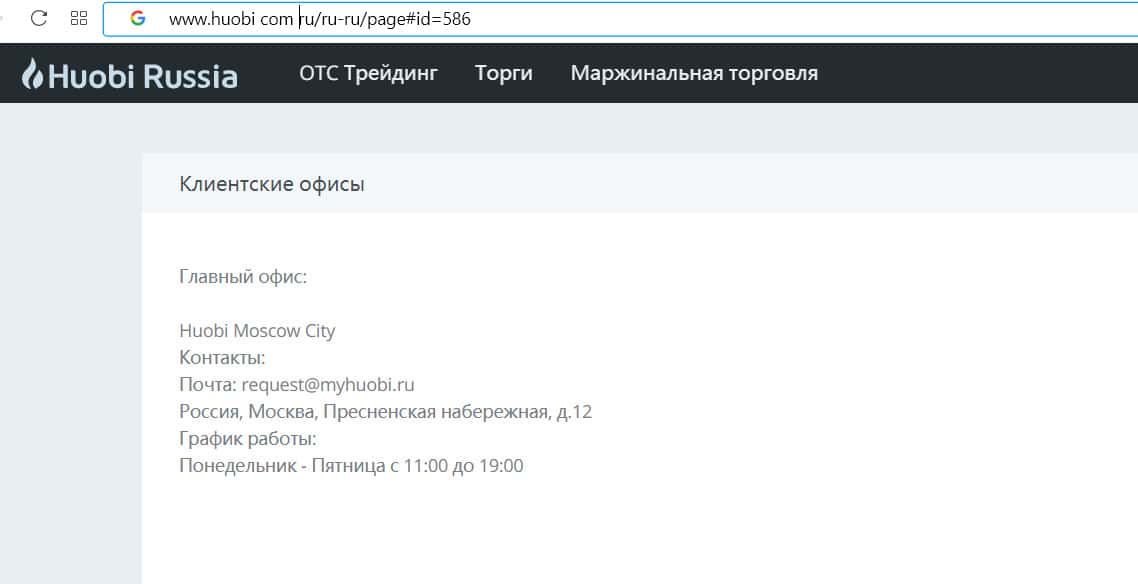 Несмотря на то, что брокерская компания Хуоби позиционирует себя как мировой лидер на рынке криптовалют, она почти не оставила своим клиентам шансов связаться с ее организаторами. На вкладке Клиентские офисы нет ни одного телефона, лишь адрес офиса в Москва-сити. Есть также электронная почта: [email protected]