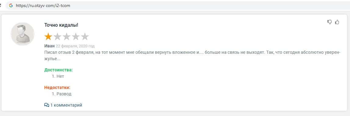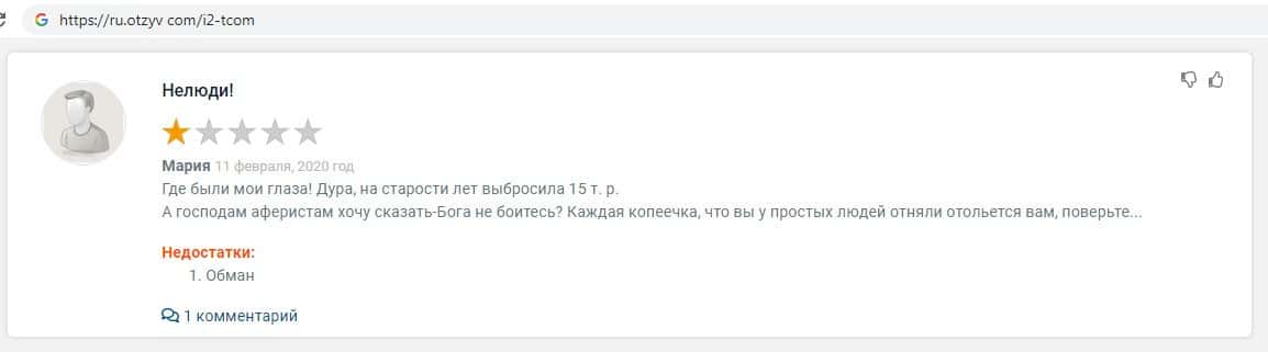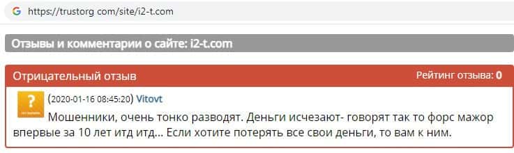 Отзывы о жульнической организации И2-Т, ныне присутствующие в сети-интернет