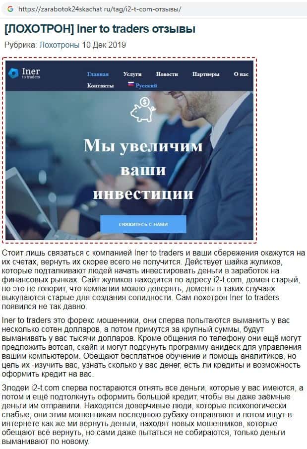 Iner to traders - обзоры шулеров на других интернет-порталах