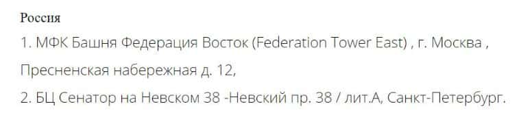 Лохотронщики Iner to traders здесь также указывают адреса местонахождения офисов своей компании на территории Российской Федерации, а именно: