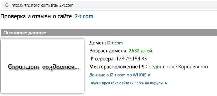 Проведя анализ данных по сайту i2-t com, не было обнаружено информации о владельце домена, что является еще одним признаком того, что имеем дело с лохотроном.