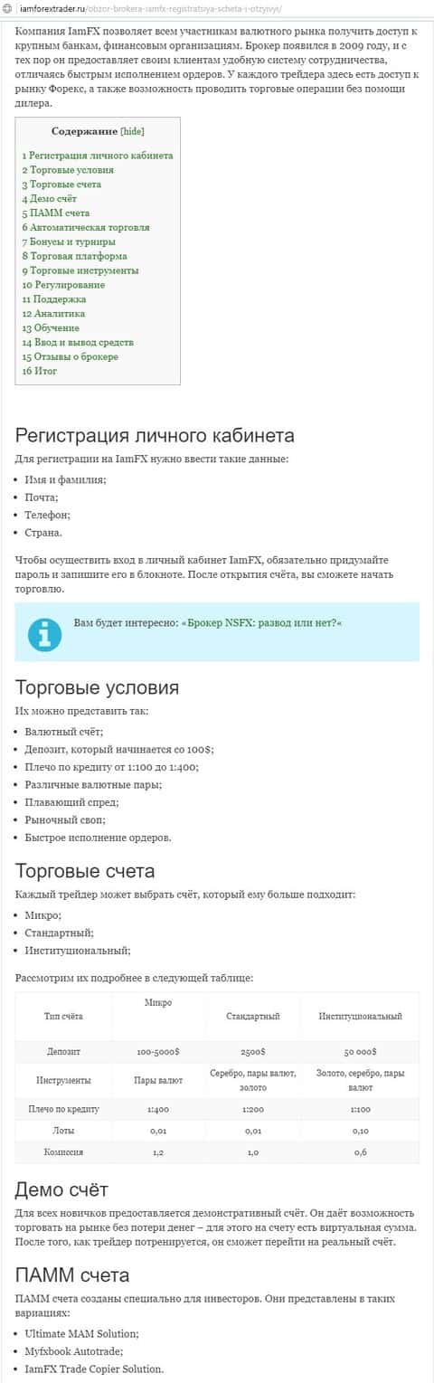 Краткий информационный обзор о форекс-кухне Иам ФХ