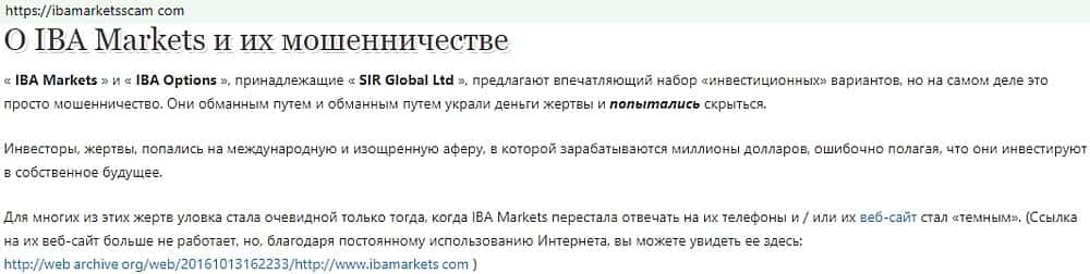 - Насколько опасен сайт прохвостов IbaMarkets?