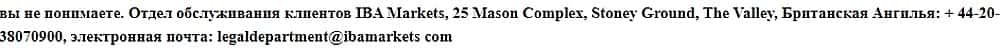 Хотя сама контора, которая управляет фанерным брокером Иба Маркетс, существует. Она зарегистрирована действительно в оффшорах Ангильи, но регистрация - это еще не лицензия.