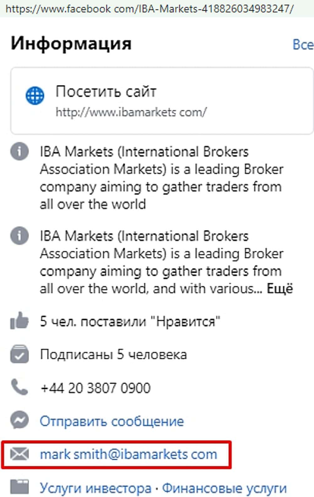- Информация о мутном дилинговом центре Иба Маркетс