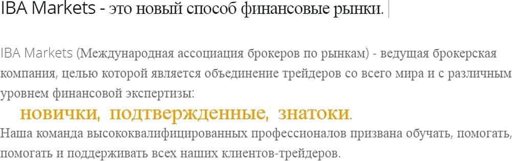Как и все брокеры-мошенники, негодяи Иба Маркетс не торопятся раскрывать имена своих руководителей и сотрудников. Вместо этого можно увидеть обычное бла-бла-бла, как и везде.