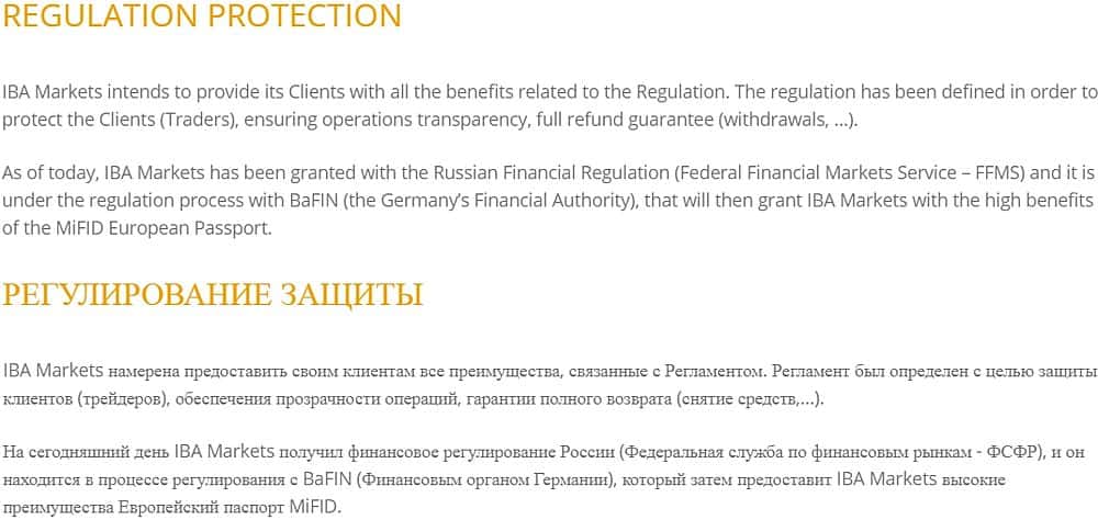 На самом же сайте разводил Иба Маркетс, можно обнаружить информацию, о том, что они пытаются получить лицензию от недорегулятора BaFin и уже ее имеют от регулятора ФСФР.