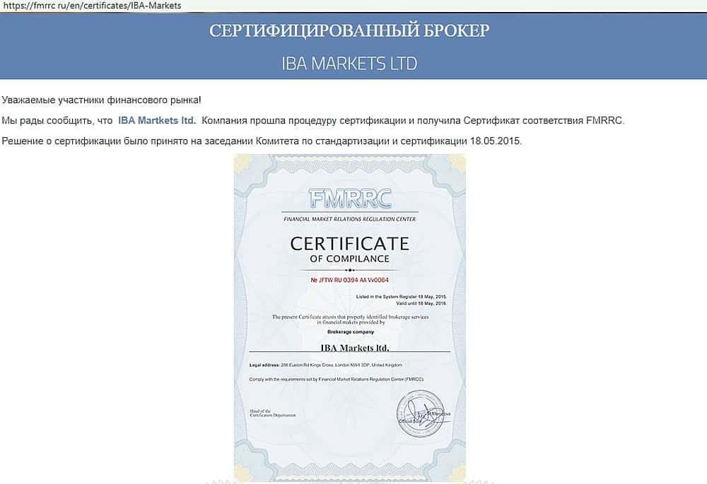 Ни одного сертификата от регулятора, которыми хвастаются шарлатаны Иба Маркетс, у них нет. А одна из контор, которая якобы выдала им разрешение и вовсе распущена в 2013 году.