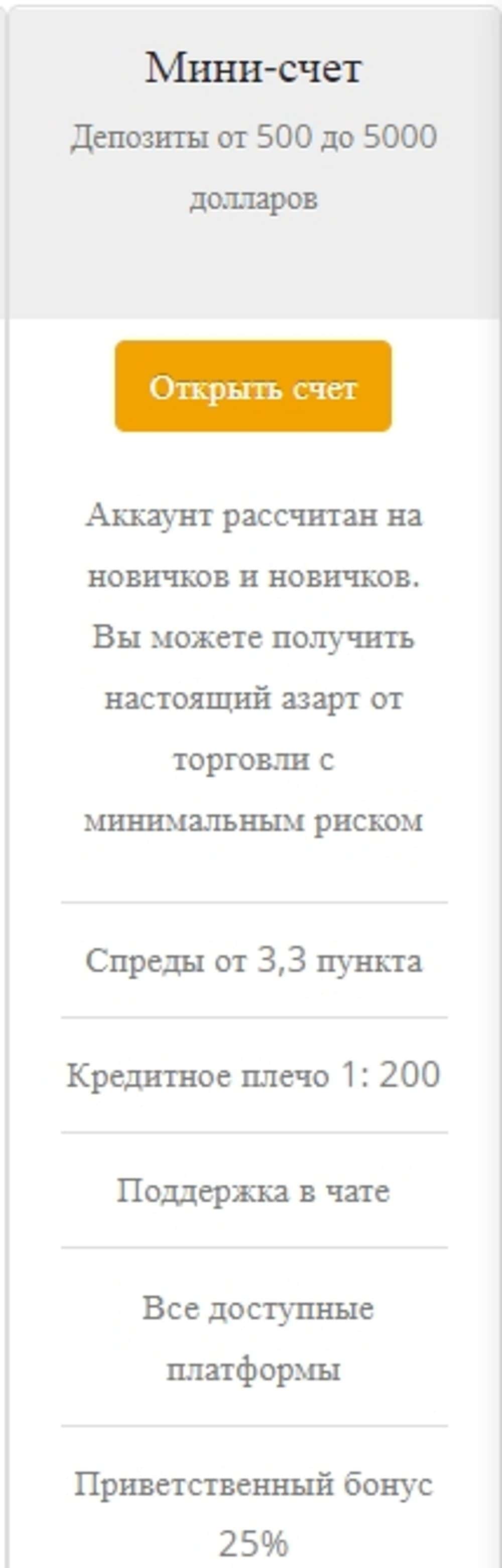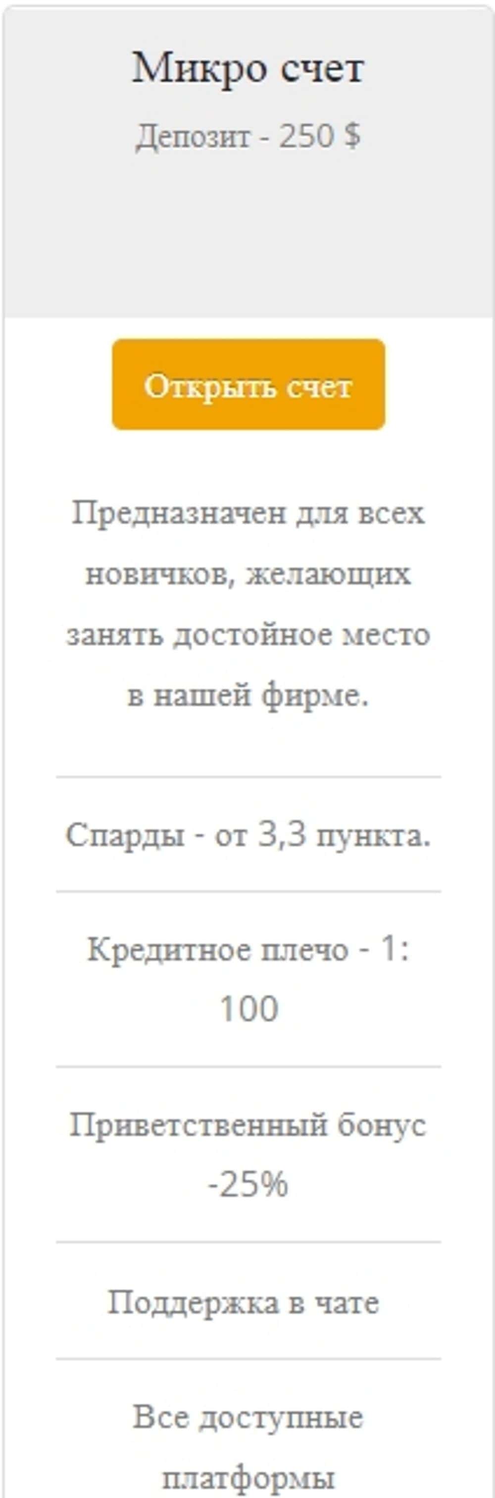 Первый счет, для самых неопытных, как пишут лохотронщики Иба Маркетс. Сюда можно зайти с 250 USD. Сразу видно кухню. Даже с кредитным плечом 1:100 на полный лот не хватает.