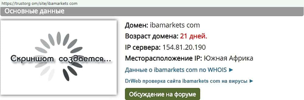 Как показал анализ, домен шулеров Иба Маркетс существует всего 21 день. Вероятно, его существование просто продляют ежемесячно или домен попросту перекупил сам провайдер.