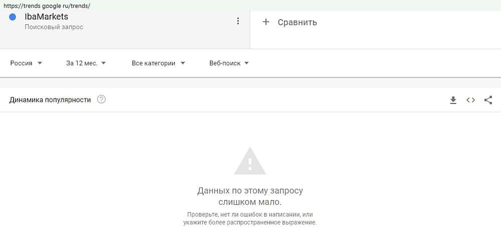 Ни разу в поисковой строке комплекса Google Ru не фигурировал запрос "IbaMarkets". Это дает еще жирный минус в пользу востребованности черного дилингового болота Иба Маркетс.