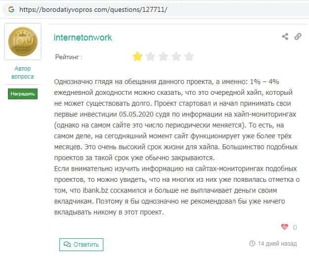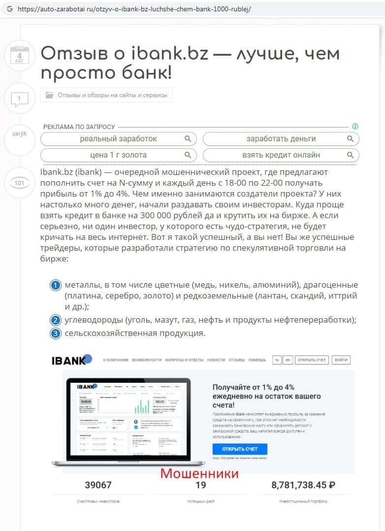 IBank Bz - обзоры аферистов на других интернет-ресурсах