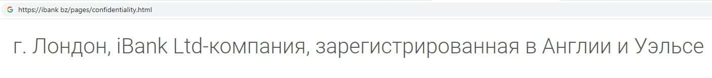 Сведения о месте регистрации ИБанк фальшивы, так как большинство мошеннических проектов у себя на сайте конкретного адреса не указывают, контора якобы находится в Лондоне.