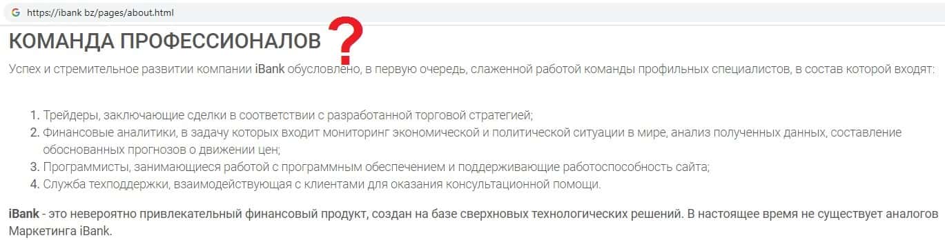 Шулера IBank Bz вешают лапшу на уши людям о том, что компанией якобы руководит команда профессионалов, но при этом информацию о руководстве скрывают.