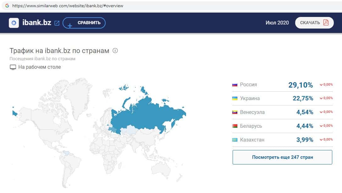 При проверке посещаемости интернет-сервиса мошеннической организации ИБанк на similarweb com оказалось, что среди трафика есть пользователи из России.