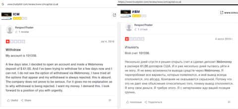 - Жулье ICM Capital не отдает клиенту 1000 долларов