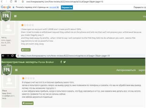 В данном случае мошенники ICM Capital совсем обнаглели, так как не хотят отдавать человеку 1000 долларов, а также сумму заработка, которая на данный момент равняется такому же значению. Человек решил слишком с ними не вести диалог, а просто обратился в FSA, чтобы те как-то повлияли на это жулье.
