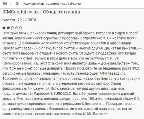 Интернет-исследователь подробно описал в своем отзыве о всех недостатках конторы ICM Capital и почему не стоит с ними связываться. По его мнению, ИСМ Капитал - один из худших брокеров, который регулируется FCA. Еще немного деятельности в таком духе и конторщики попадут в черный список самого регулятора.