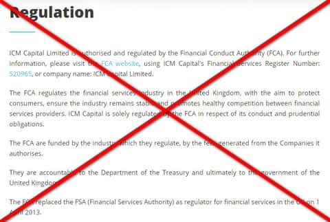 Касательно информации о лицензировании деятельности конторы ICM Capital, у себя на сайте они выставили на показ информацию о том, что регулятором выступает FCA, но это еще ничего не значит. Было уже тысячи случаев, когда сам надзорный орган публиковал информацию об исключении жуликов из своего списка и деньги кинутым клиентам не вернули.