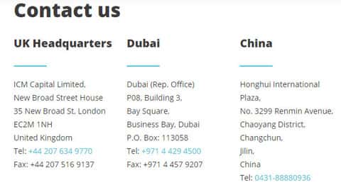 Дилинговая кухня ICM Capital также пытается привлечь своих клиентов международным статусом, якобы у низ есть офисы в некоторых странах. на такое может клюнуть даже опытный трейдер, который разбирается в основных параметрах добросовестного брокера. Но это не про ИСМ Капитал, поэтому предлагаем список контактов этого жулья: