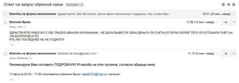 На всевозможных сайтах присутствует большое количество купленных отзывов лохотрона ИДБ Трейдс, написанных как будто под копирку, но настоящие эмоции не прикрыть. Эмоции десятков людей, которым мошенники IDB Trades не позволяют вывести средства.