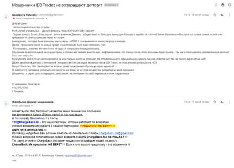 - Мошенники IDB Trades не отдают клиенту 40 000 долларов