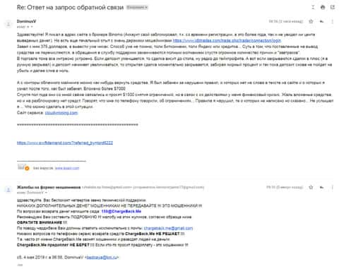- Жалоба на аферистов ИДБ Трейд, Биномо и Клауди Майнинг