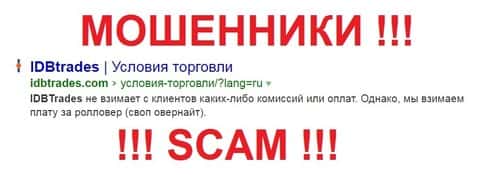 Как уже говорилось, мошенники ИДБ Трейдс и им подобные не брезгуют ничем, лишь бы привлечь побольше клиентов, и развести их на деньги без возможности вывода. Такие лохотроны работают только на ввод денег, и штампуются десятками, чтобы подчищать репутацию, ведь мошенники на 2-3 лохотронах могут быть одни и те же.