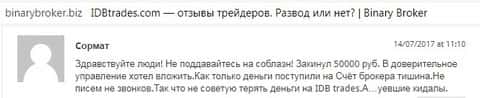Отзыв на сайте boexpert ru о мошенниках IDB Trades