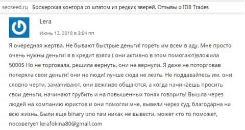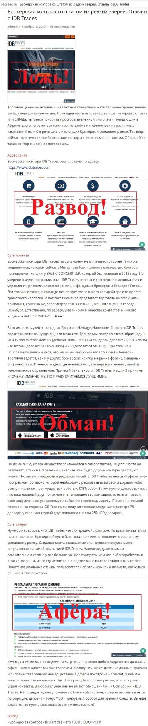 - Пользователи авторитетного сайта seoseed ru о наглых мошенниках ИДБ Трейдс