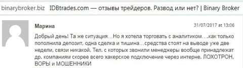 Отзывы на сайте binarybroker biz – десятки клиентов теряют свои средства в лохотроне IDB Trades