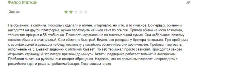 Клиент компании мошенников IDCM пишет, что у компании всё очень плохо. Он указывает, что обменник находится совсем на другом сайте, похоже что жуликам запрещена эта деятельность, и они просто перебросили обменник на другой сайт что бы избежать ответственности если их обвинят в чём то.