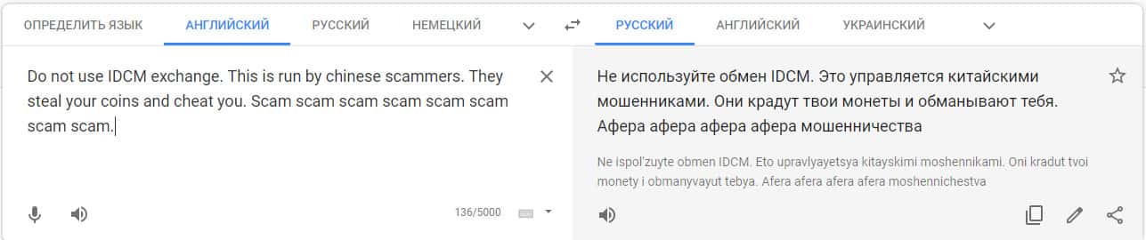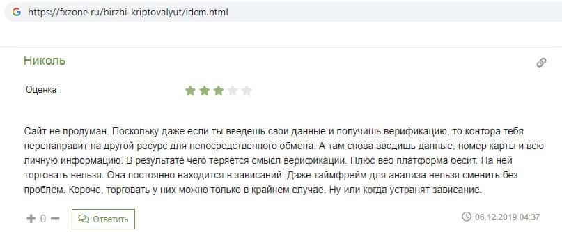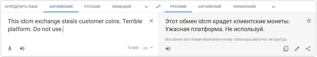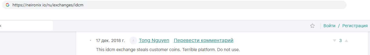 В данном отзыве говорится о том, что мошенническая организация IDCM Крадёт монеты своих клиентов. Зарубежный трейдер предостерегает неопытных трейдеров о том, что бы не использовали данную платформу, и называет её ужасной. Похоже псевдобиржа решила перейти на русскоязычных трейдеров так как за рубежом все узнали, о мошенничестве.