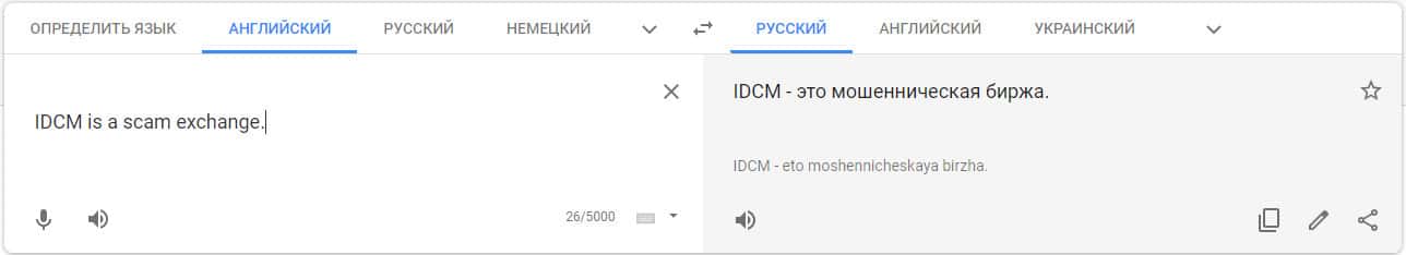Предоставляем перевод отзыва о мошенниках IDCM.