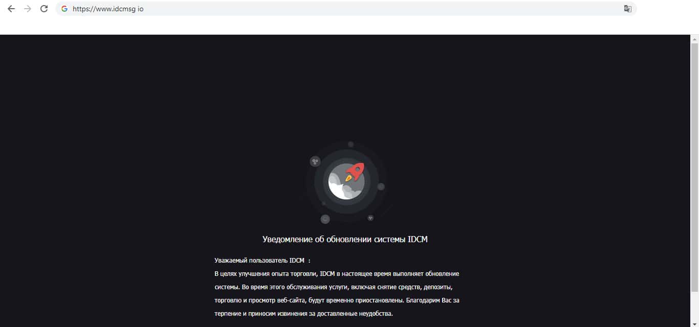 Мошенническая организация IDCM меняет свои площадка как только набьют свои карманы. idcm io - это нынешний домен аферистов, но совсем недавно мошенники работали на другом домене - idcmsg io, но как только их начали разоблачать, они сразу же прикрыли лавочку и перебежали на другую площадку, а бывших клиентов кинули.