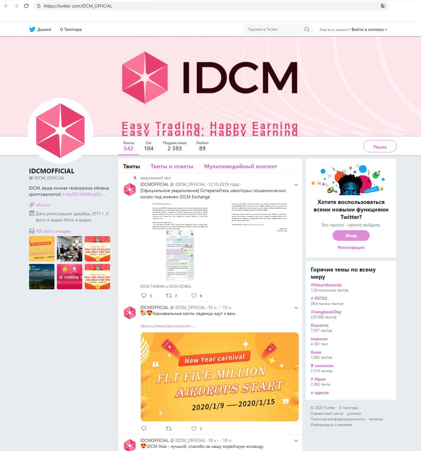 Так же жуликами ИДЦМ - ИДСМ была создана страница в твитере. Там они набрали более 2500 подписчиков. Многих они могли просто накрутить, что бы привлечь аудиторию, так как мало кто в твитере заинтересуется такой страницей явного мошенника. но лохотрон не опускает руки и всячески пытается искать наивных клиентов.