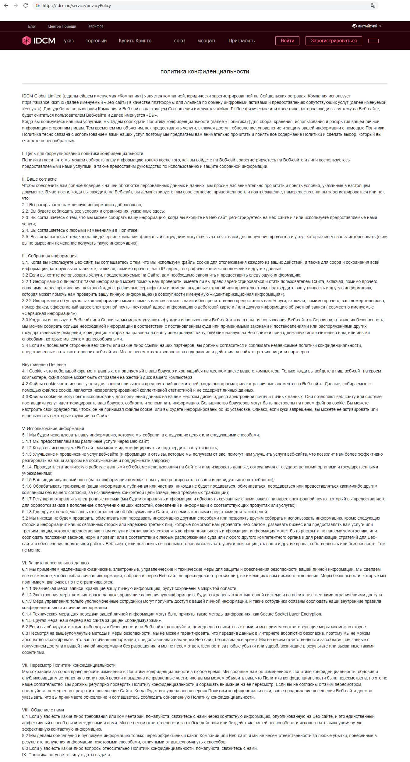 Представленная политика конфиденциальности мошенником IDCM - не является официальным документом, так как нет никаких подтверждений того, что компания легальна, и хоть бы одной копии документа. А так это просто фейковые надписи на сайте, так как писать они могут что угодно и менять эти условия когда угодно.