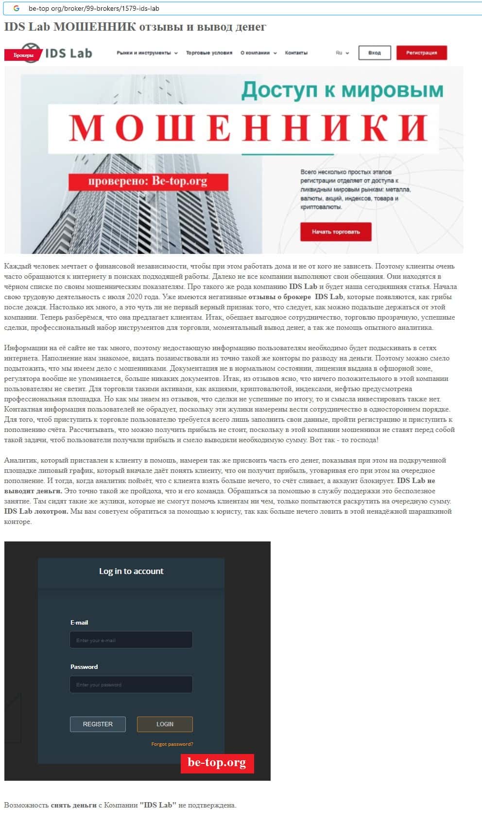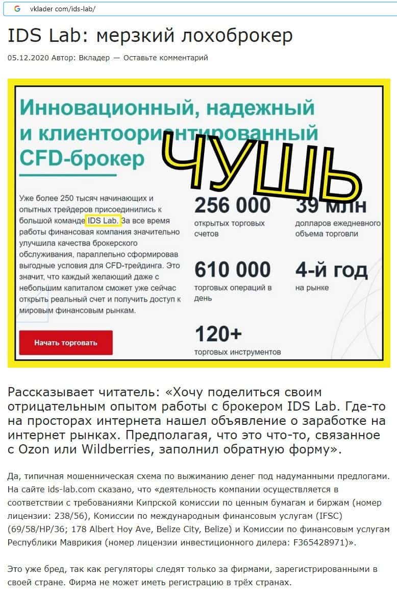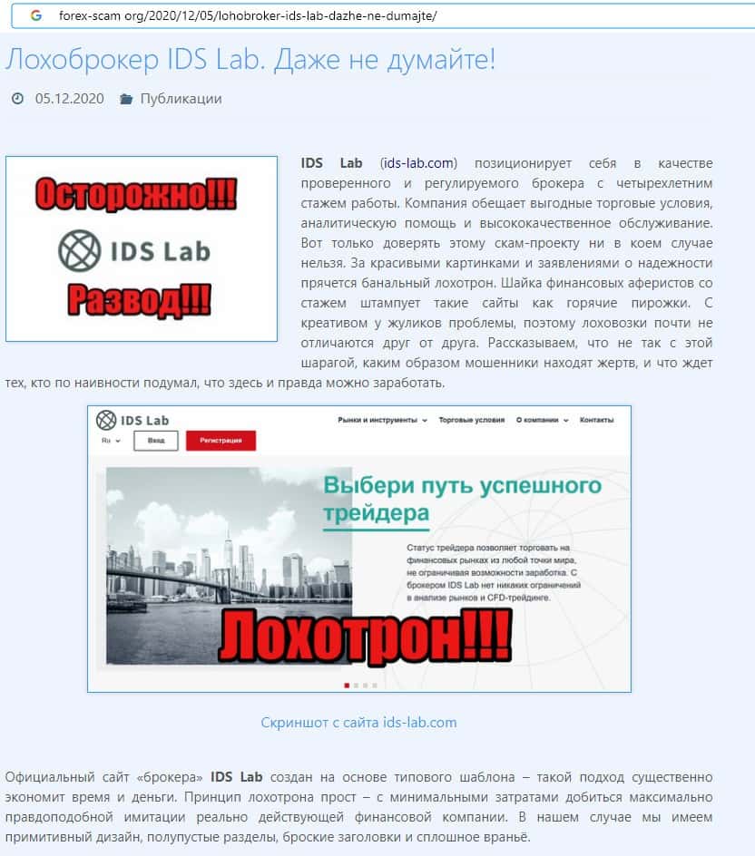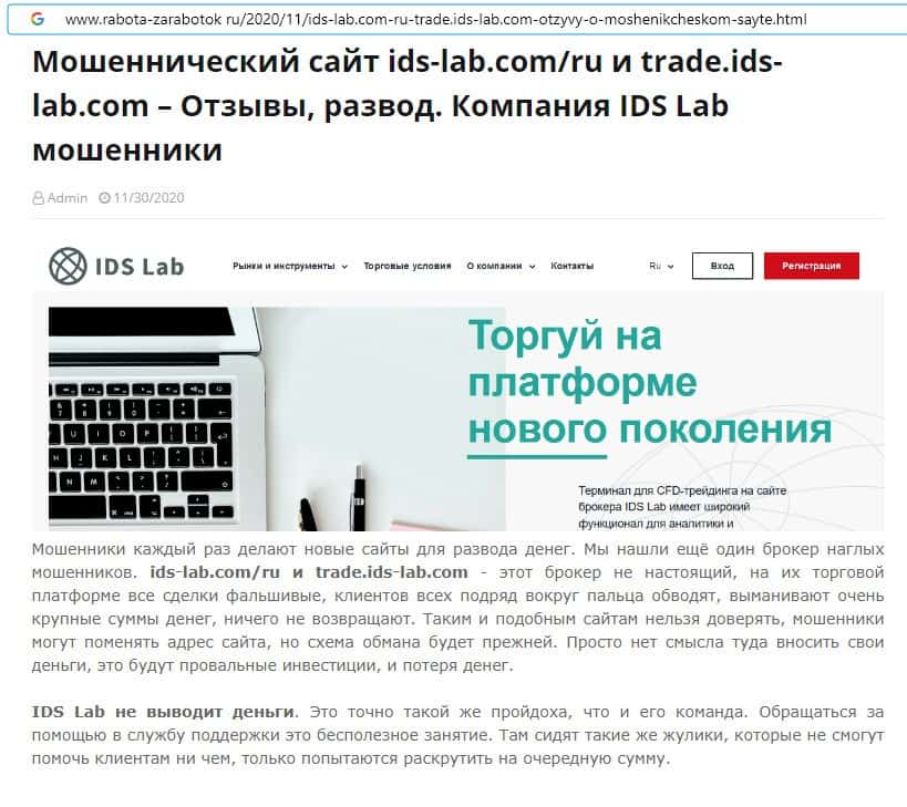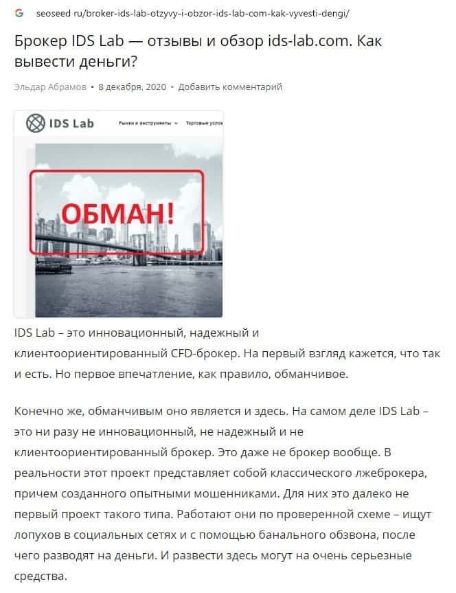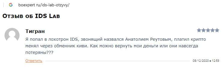 ИДС Лаб - обзоры аферистов на других интернет-ресурсах