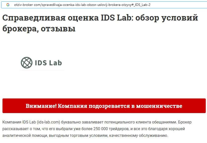 Аферисты ИДС Лаб позиционируют себя как надежного и честного брокера, которым на самом деле не являются.