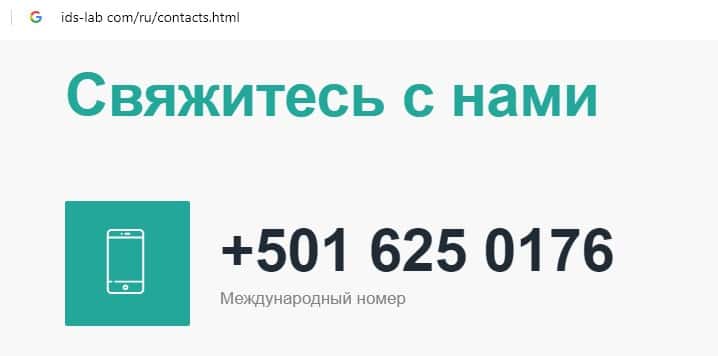 Обманщики IDS Lab на своем дырявом сайте указали номер контактного телефона, с которого навязчиво названивают потенциальным жертвам: